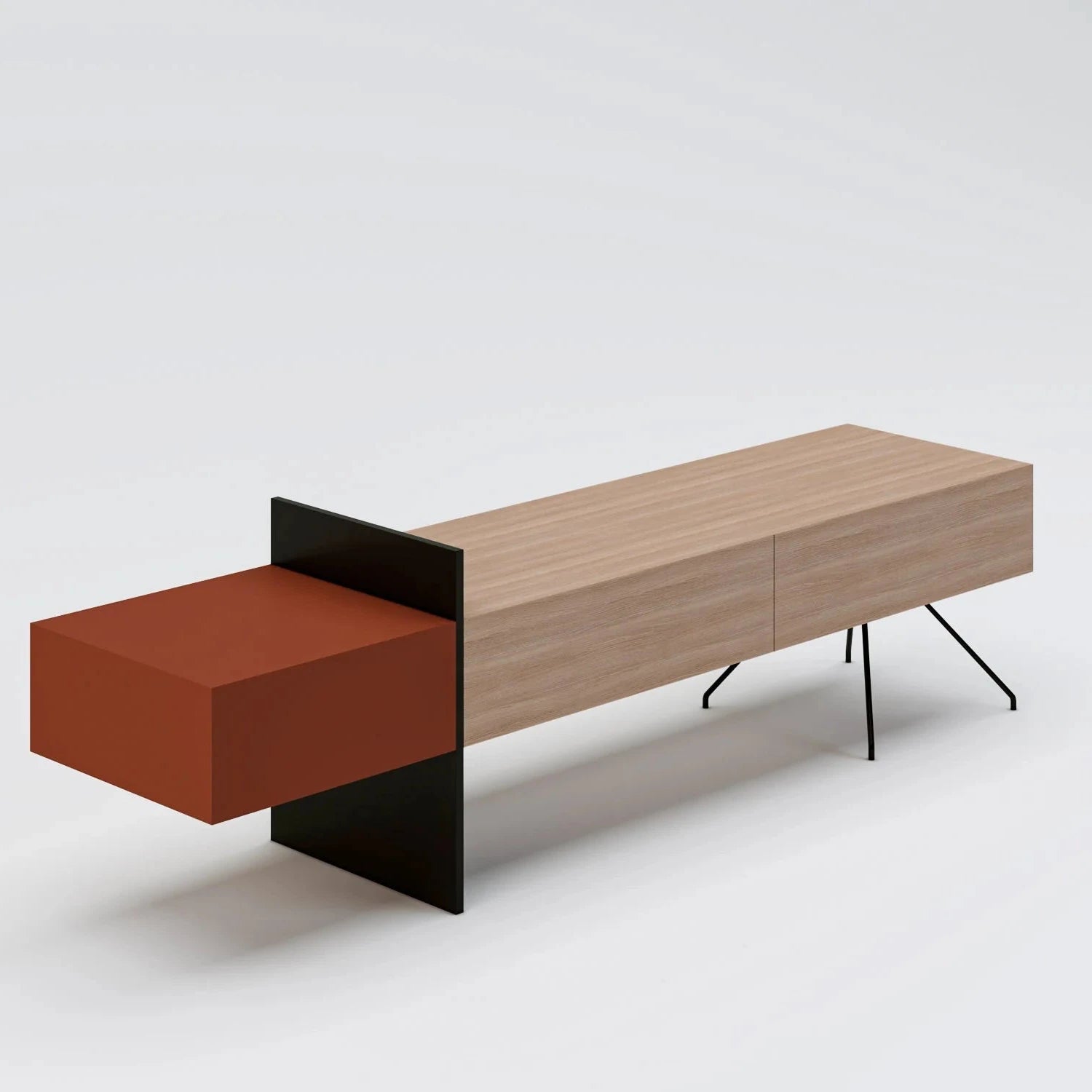 وحدة تلفزيون أركو مزيجٌ جريءٌ من الفن الحديث والوظيفة. تتميز بتصميمٍ غير متماثلٍ مذهل، يجمع بين درجات لون خشب البلوط الطبيعي ولمسةٍ من اللون الصدئ وعناصر فولاذية سوداء لإضفاء لمسةٍ جماليةٍ نحتية. تُقدم أركو، المُثبتة على أرجلٍ معدنيةٍ زاوية، حلاً تخزينياً راقياً يُضفي لمسةً جماليةً مميزة. مثاليةٌ لمن يُقدّرون التصميم المعاصر بلمسةٍ معماريةٍ مميزة.