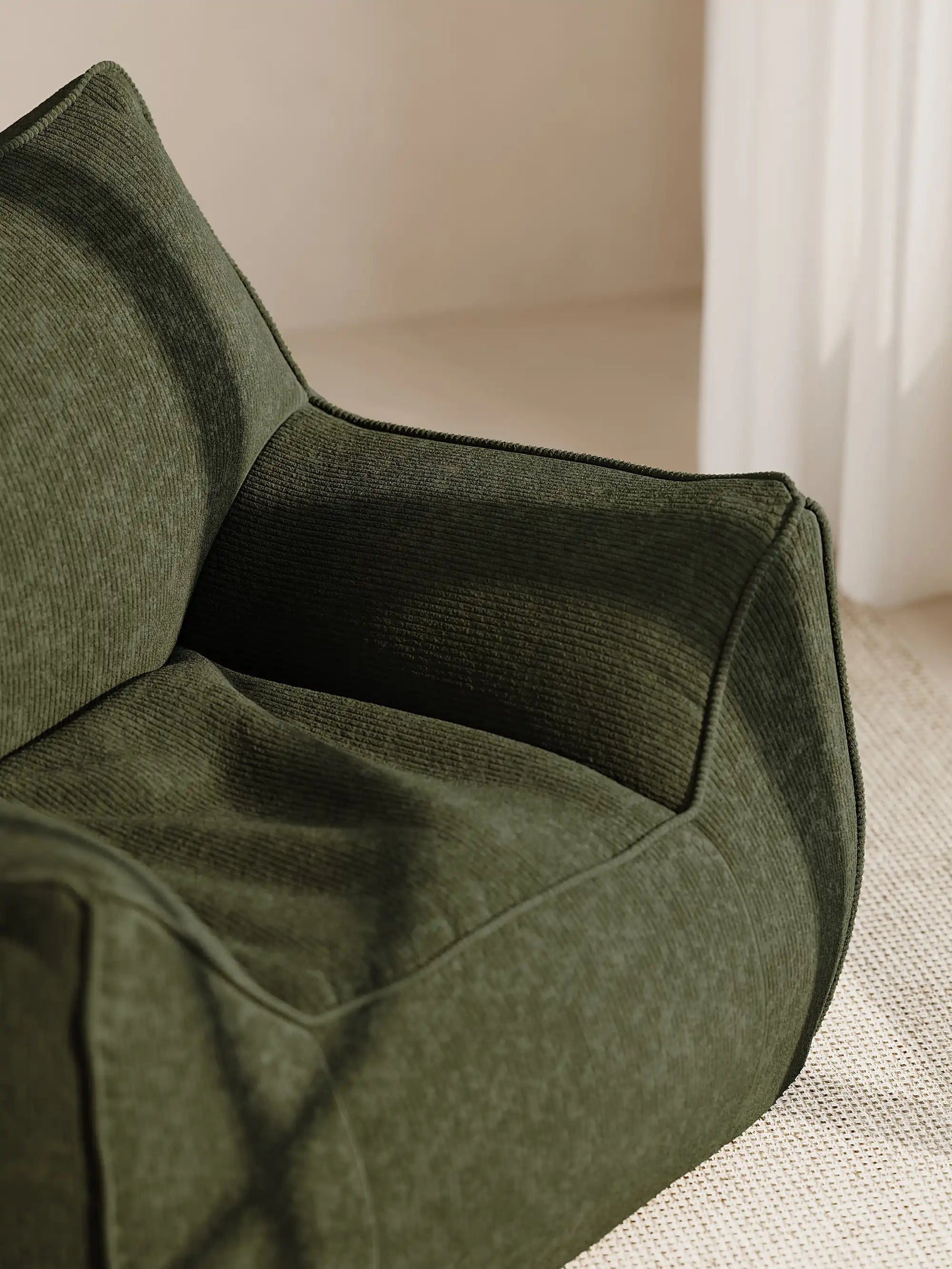 The Elmir Bean Lounger is where sculptural form meets unspoken comfort. Its silhouette, soft yet assured, evokes the ease of slow living — a generous shape designed to adapt to you, not the other way around. Wrapped in richly textured corduroy, Elmir carries both warmth and sophistication, turning a casual seat into a tactile statement piece.