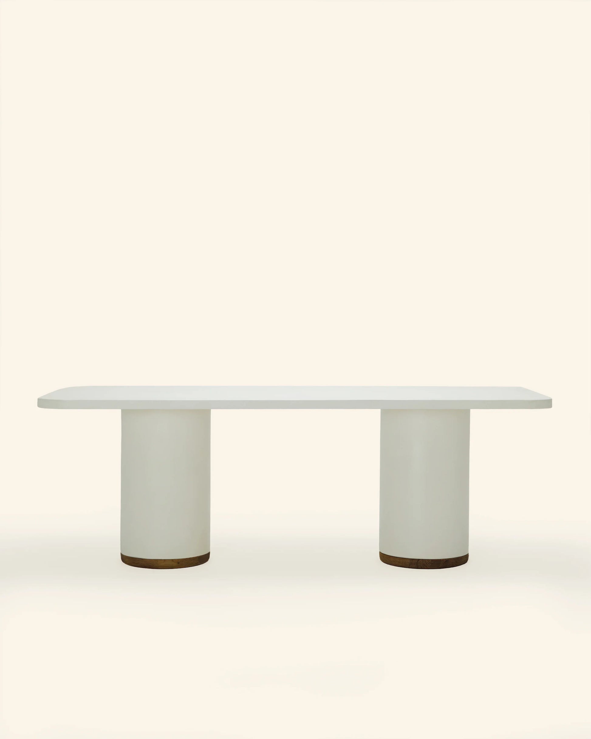 Sculpted from solid, sustainably sourced wood, the Eloura is more than a table — it’s a centrepiece of slow living. Its clean silhouette and grounded presence bring raw Mediterranean character to any space, while the soft edges and subtle grain tell the story of true craftsmanship.