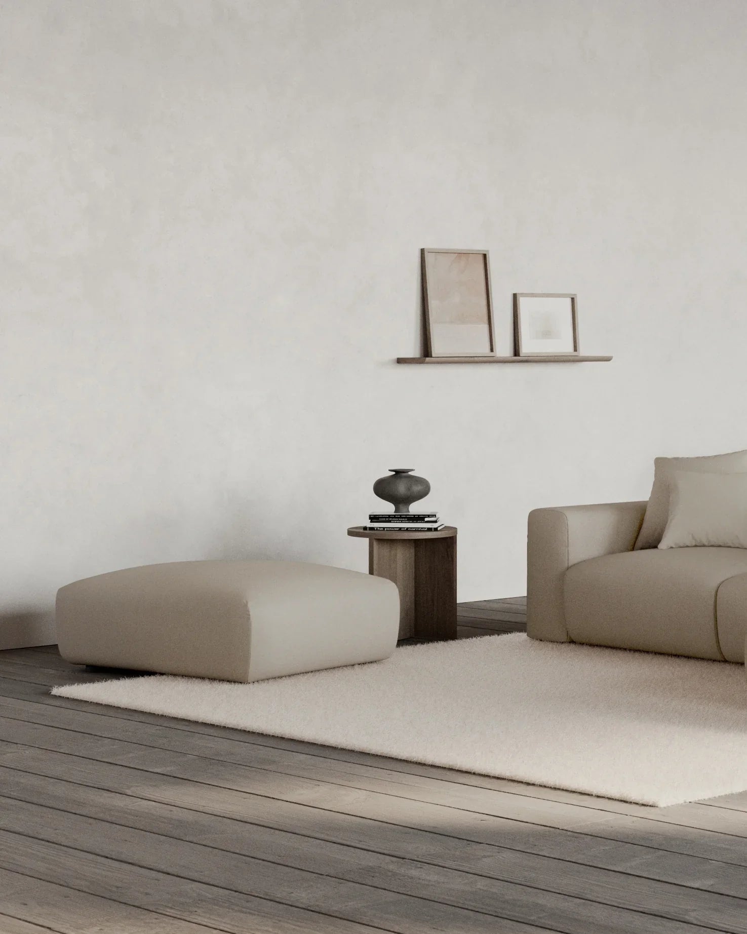 Handcrafted with a solid sustainable wood frame and high-resilience cushioning, The Envari offers understated comfort while maintaining a refined silhouette. Whether styled as an ottoman, a low seat, or a design statement, it embodies quiet elegance in every detail.