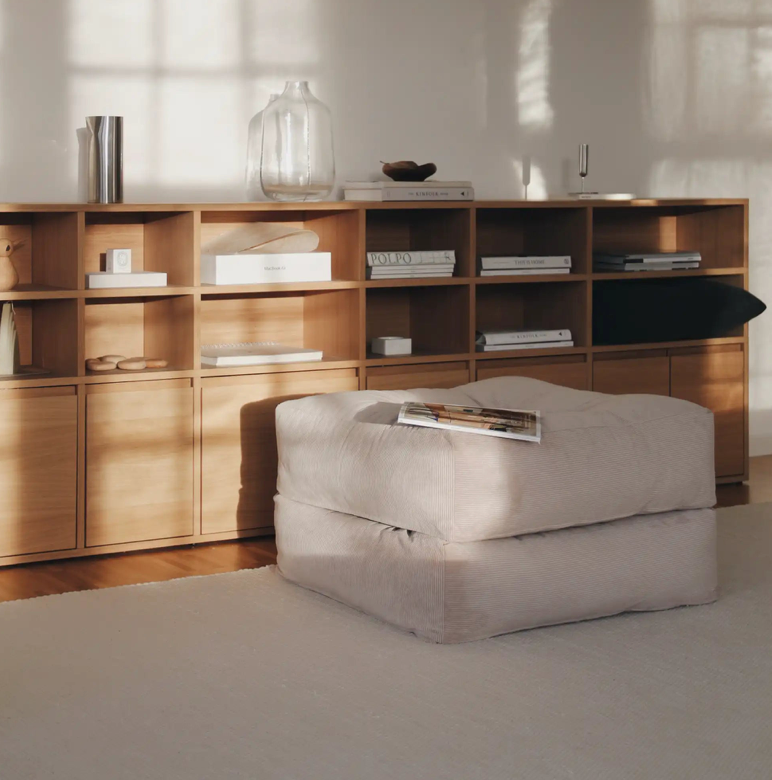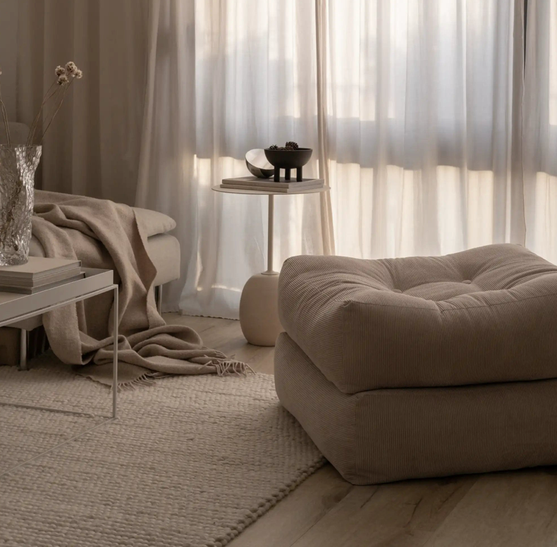 The Orben Pouf blends soft volume with grounded strength. Its oversized circular form sits low and confident, inviting stillness without asking for attention. Upholstered in richly textured fabric with subtle tonal depth, Orben becomes more than a seat—it’s a tactile anchor. Whether used as a resting point, side table, or quiet statement, Orben brings balance to modern interiors through simplicity and proportion. Understated, but unforgettable.